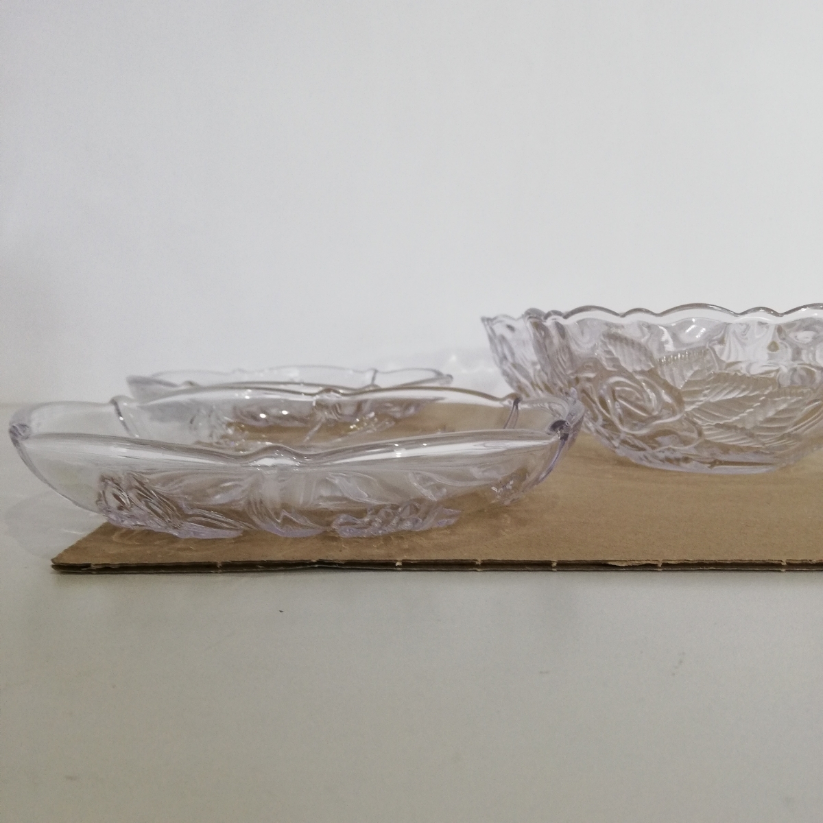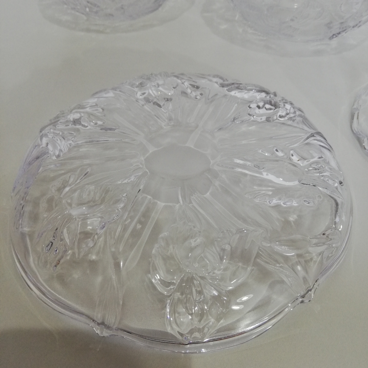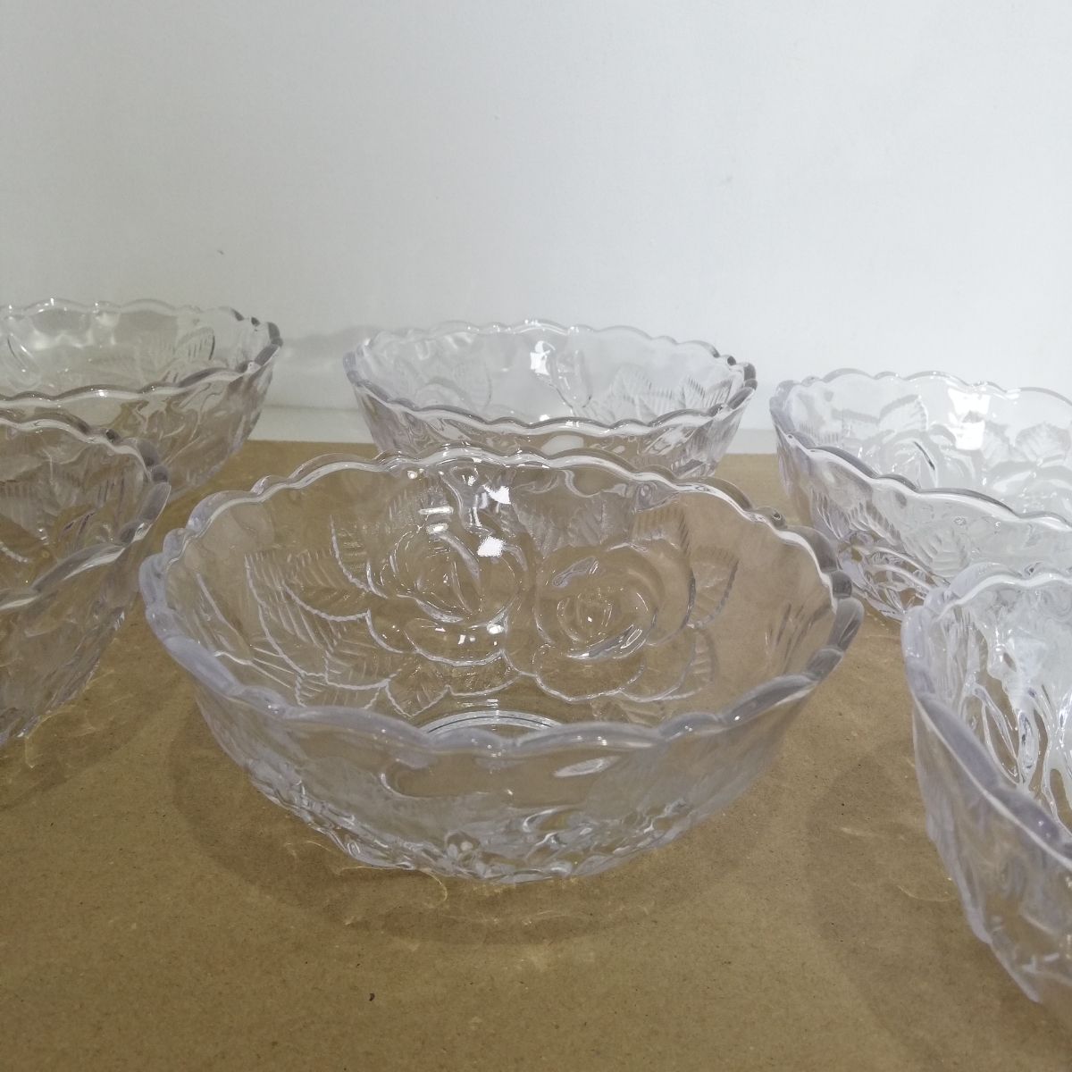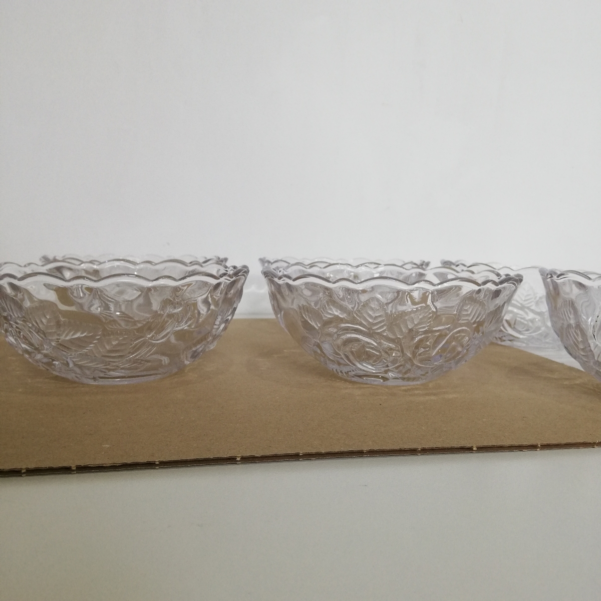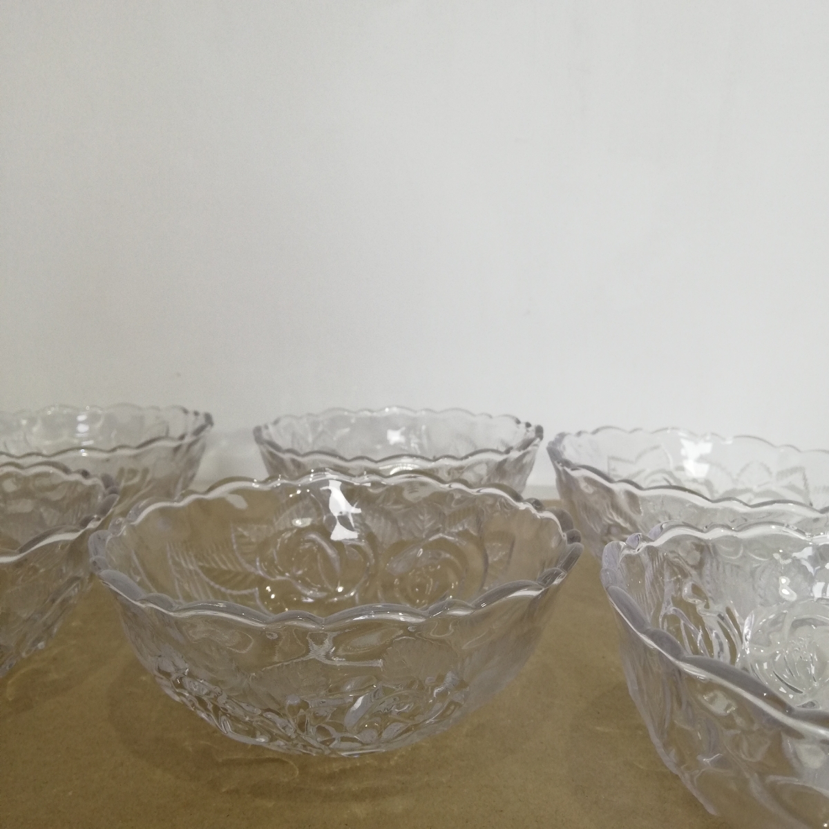 曽我ガラス MID WINTER ROSE & 花しょうぶ 裏陽刻ガラス皿鉢 8点セット [デザート プレート ボウル 型ガラス 薔薇 菖蒲 レトロ 昭和]