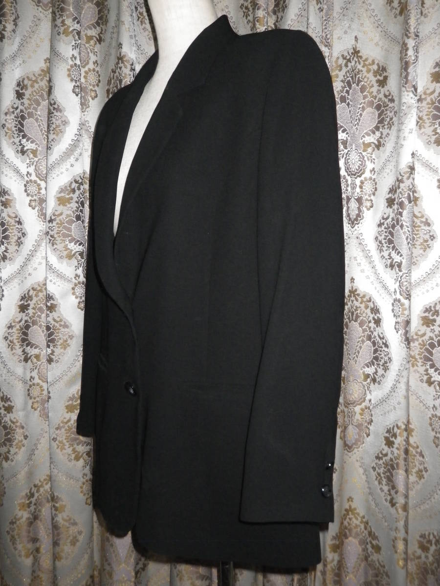02【中古美品】*EARTHY MODE 総裏地付 黒ジャケット ベーシックデザイン 内ポケットも有♪ さらさら素材 L レターパックプラス利用可