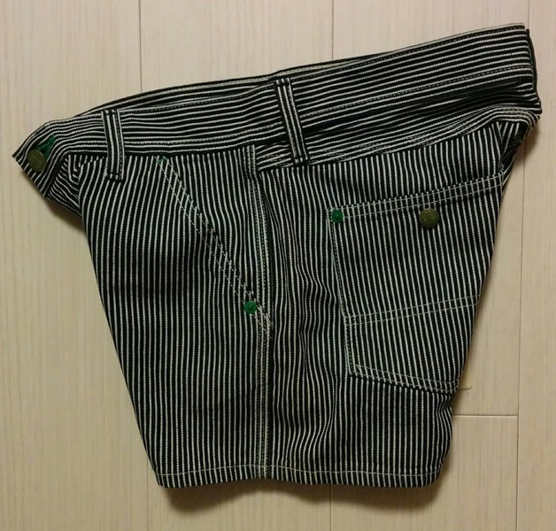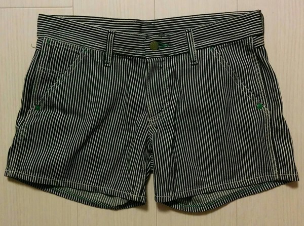 ヒッコリー生地、ローライズ、クラシックな短パンです。