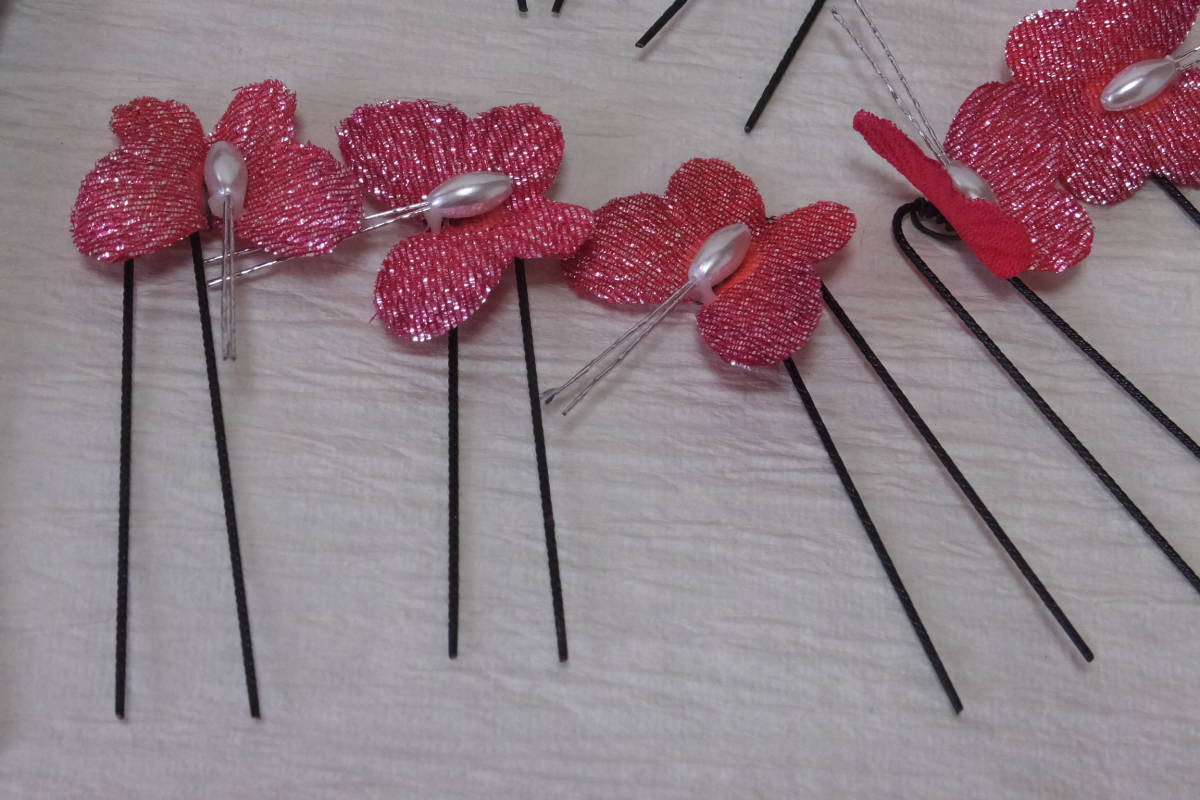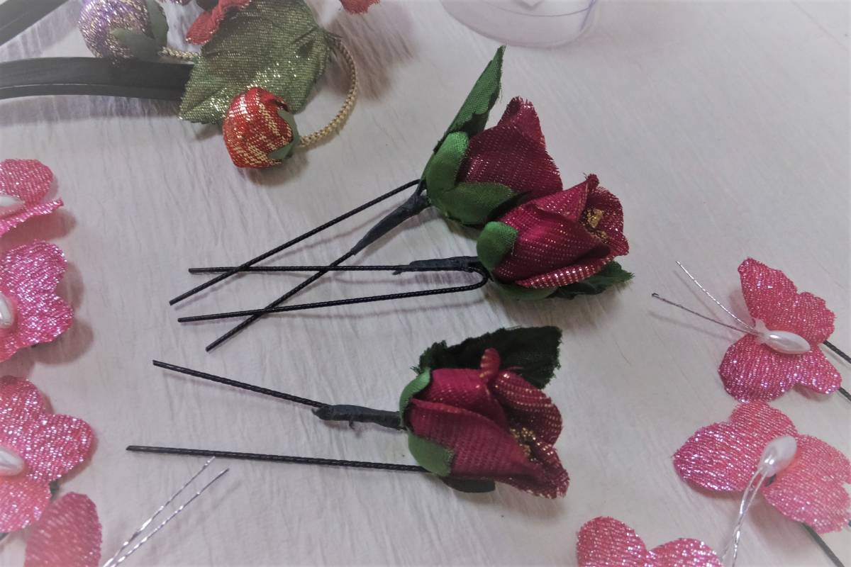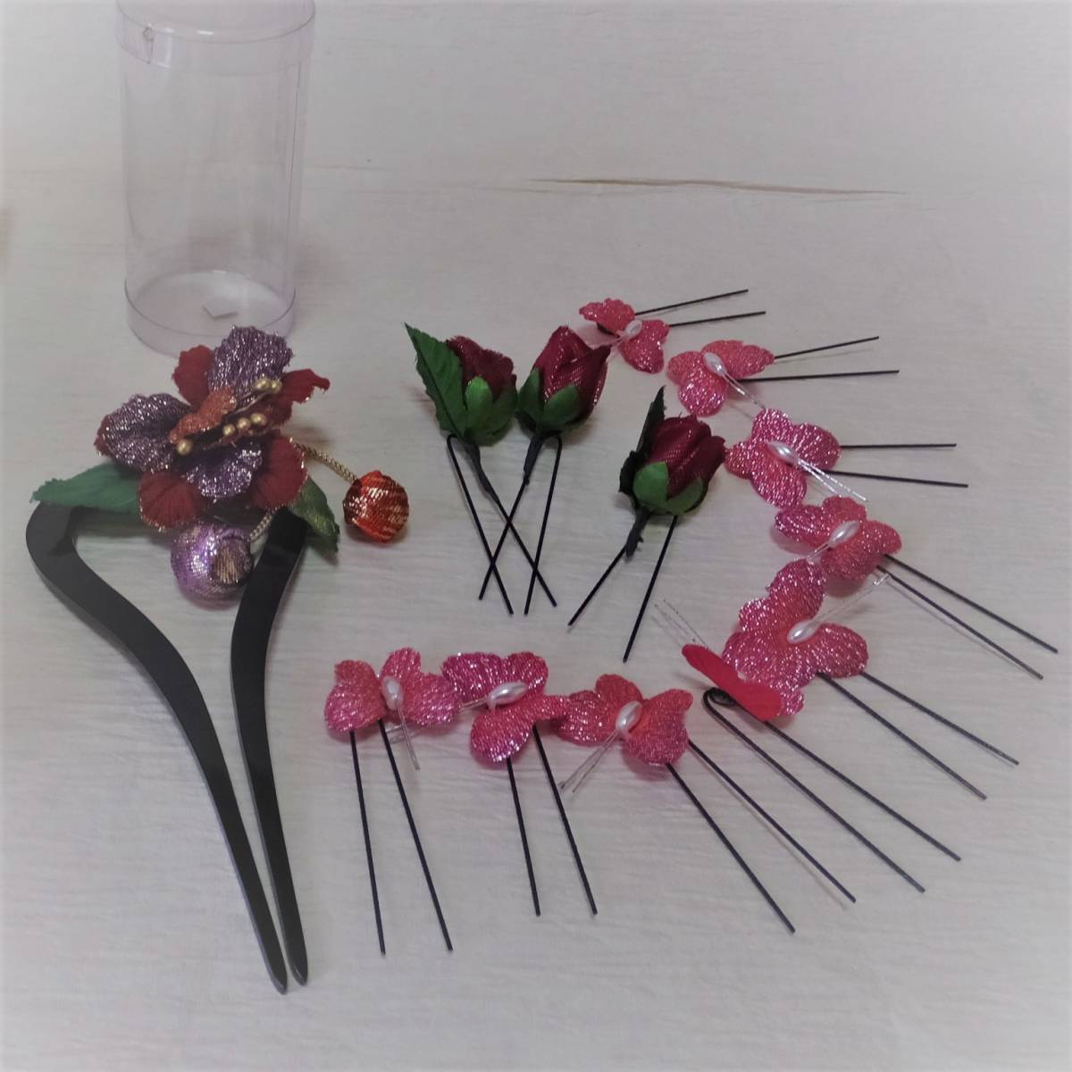 かんざし1点、バラのピン3点、ちょうちょのピン9点 合計13点のセットです。