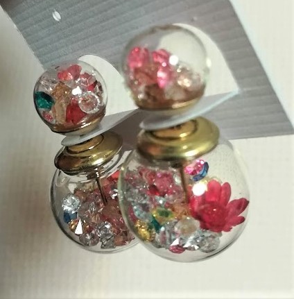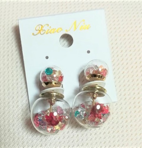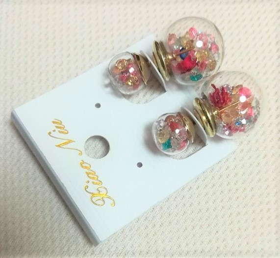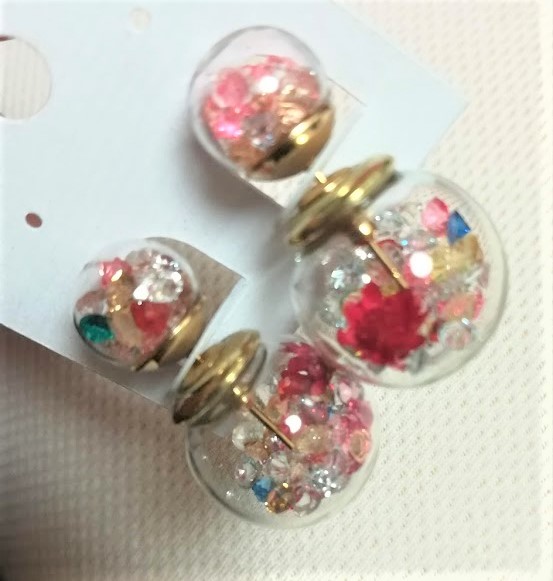 可愛い赤いお花のドライフラワー&クリスタルのピアスです★