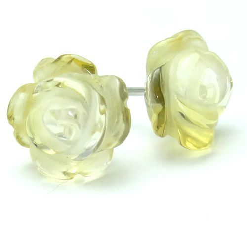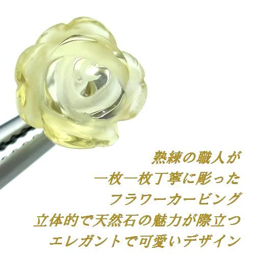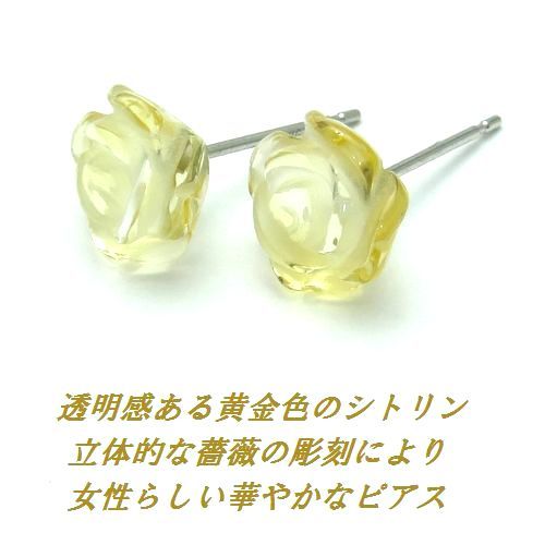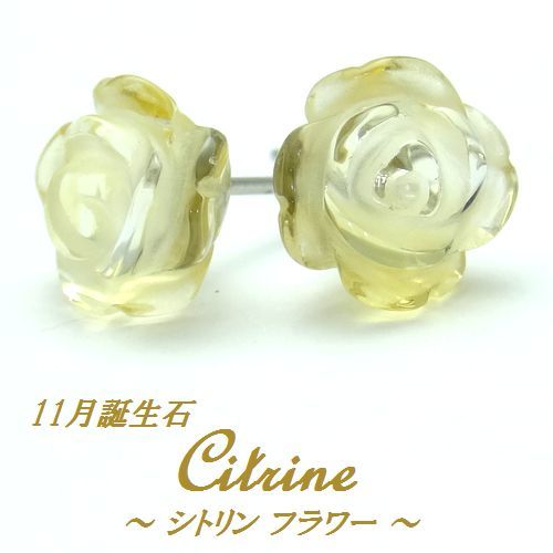K10WG シトリン フラワーカービング ピアス 薔薇 ローズ ジュエリー ホワイトゴールド 11月誕生石 天然石 花 かわいい 箱付き