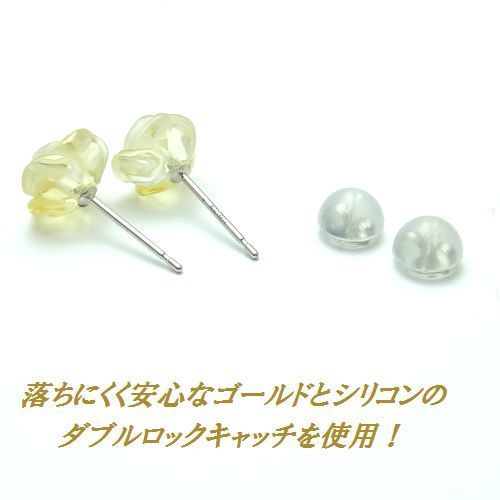 キャッチは、ゴールドとシリコンのダブルキャッチになっているので、落ちにくく安心してお使い頂けます。