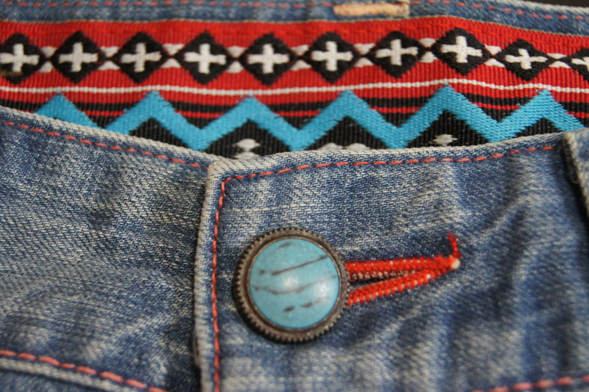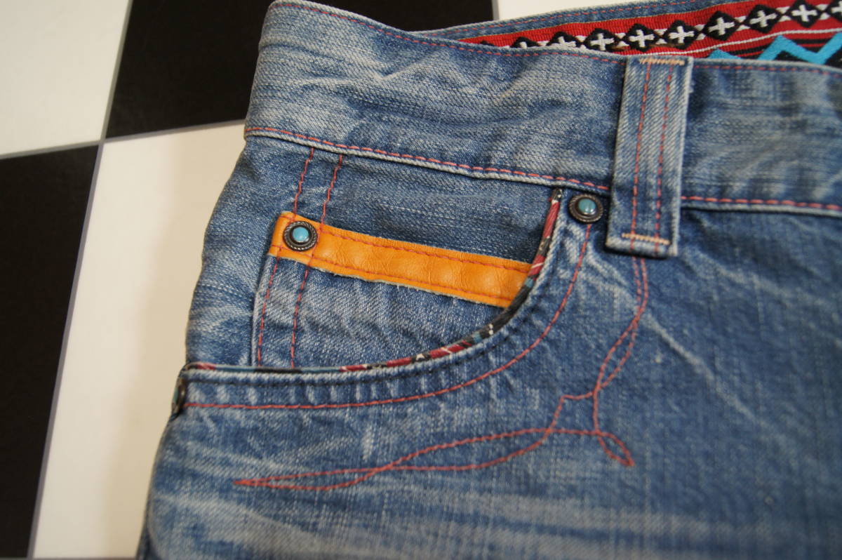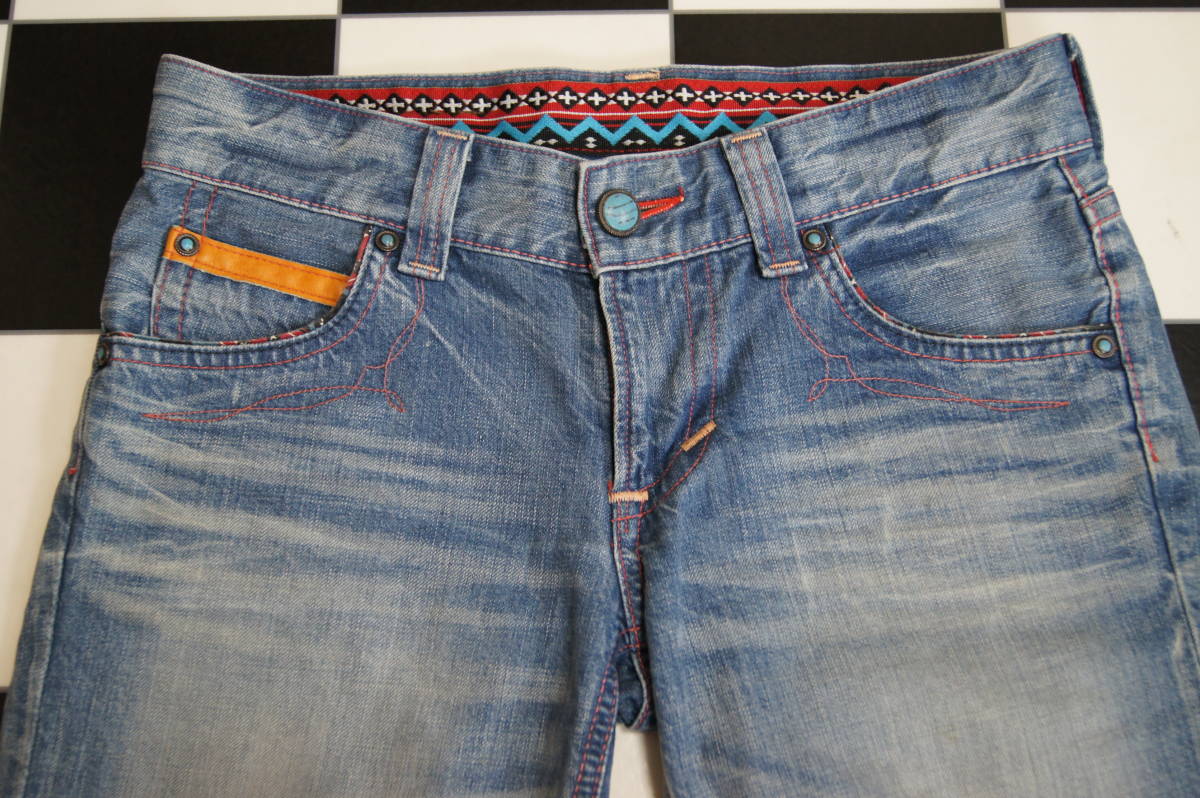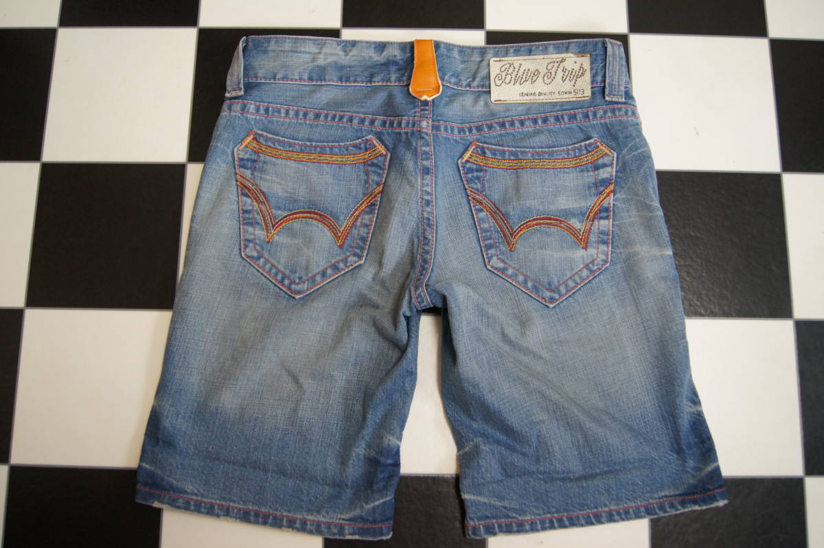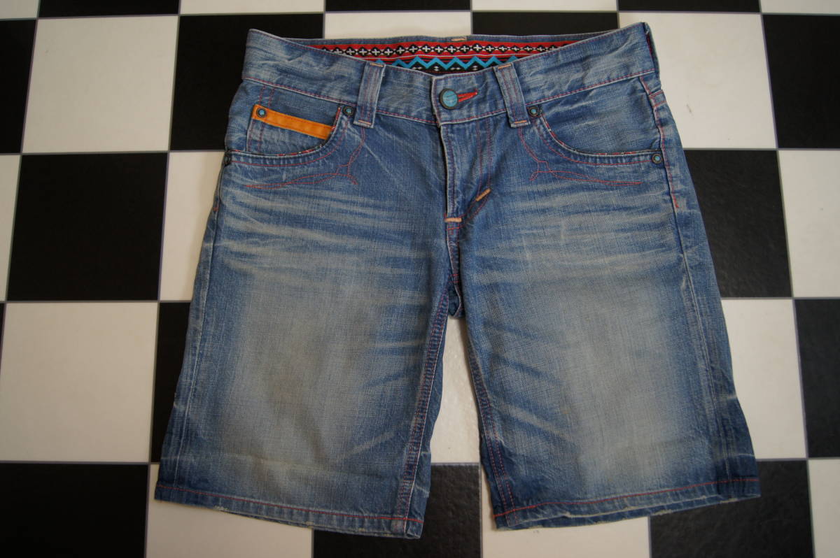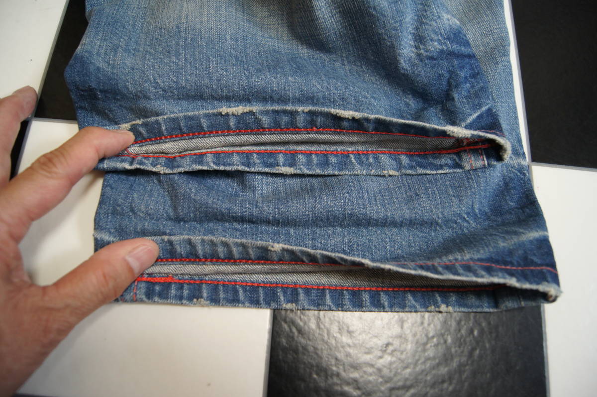 <商品状態のランク> Bランク <表示サイズ> S <素材> 綿100% <商品説明・コメント> 色はライトインディゴブルー系 ハーフデニム ユーズド加工 ツイスト加工 両足裾部分ダメージ加工 両足裾付近に折返し跡あり 裾部分チェーンステッチ ノークレーム、ノーリターンでお願いします 詳細サイズ(平置きで計測)をよく確認して入札してください |