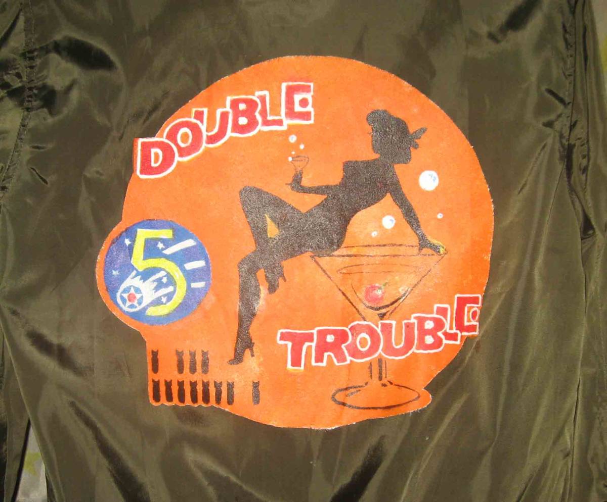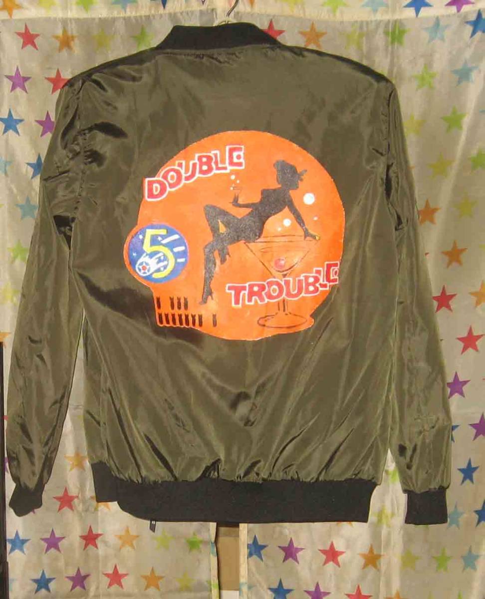 ジャンパーの状態は良いです。 ナイロン製品 薄手のジャンパー 表記サイズはLですが、私には少々窮屈です。ちなみに私は身長174 体重65キロで普段は一般的なLサイズを着用していますが、これは MサイズとLサイズの中間的な大きさだと思います。 肩幅44 袖丈59 着丈63 身幅55センチ 背中はハンドペイント ワッペンは元々このジャンパーに縫い付けられていたものです。