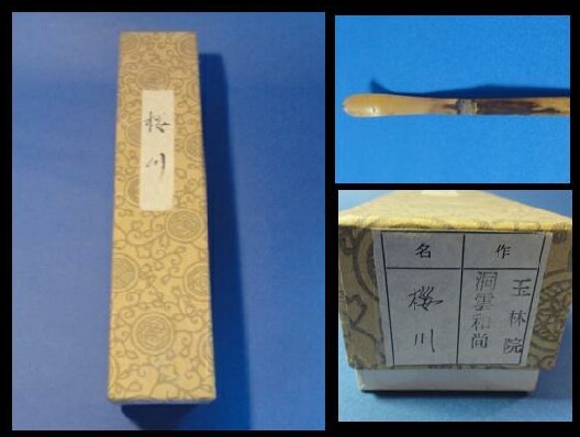 | ★商品説明★ | ◇ 茶道具 竹茶杓 玉林院 洞雲和尚 銘「桜川」 ◇ 長期保管の中古品 ◇ 長さ18.5cm 共箱 紙外箱 長さは目安としてください | |