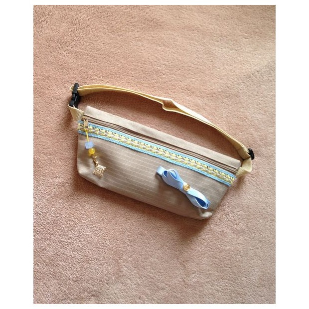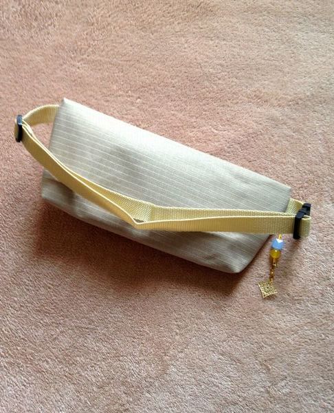 ハンドメイド◆ウエストポーチ◆お財布 携帯 スマホケースにも♪小銭入れ◆ベージュ◆レース リボン&ゴールドボタン