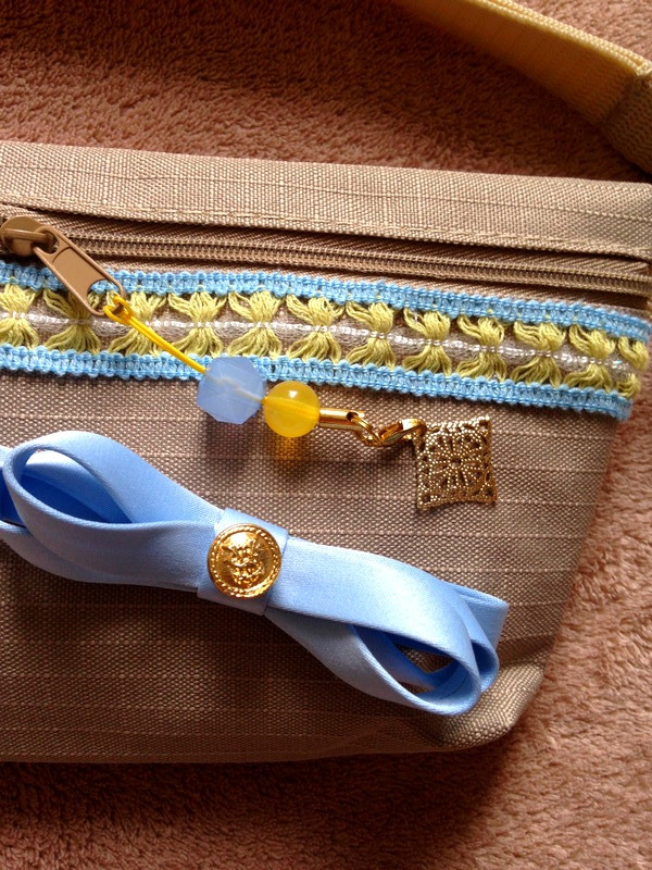ウエストポーチ◆お財布 携帯 スマホケースにも♪小銭入れ◆ベージュ◆レース リボン&ゴールドボタン