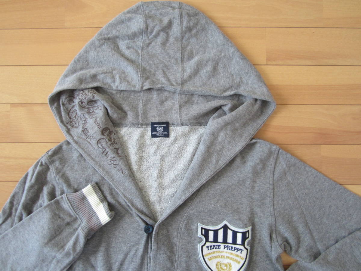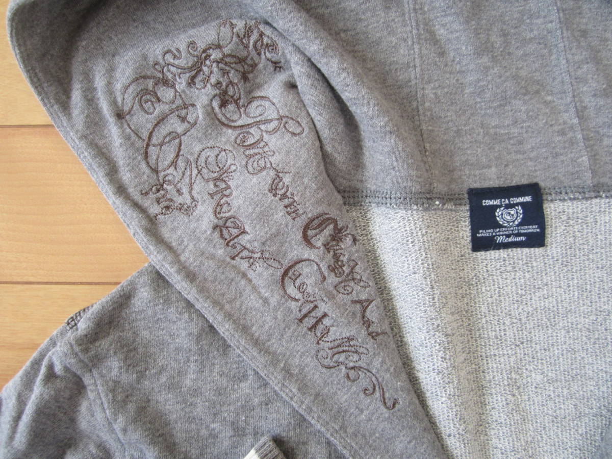 ★COMME CA COMMUNE no.51-15CU04 右襟刺繍ミニ裏毛フーデッドカーディガン★杢灰sizeM★