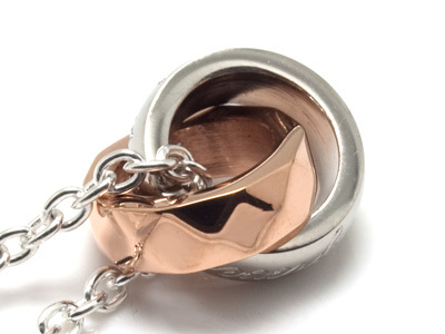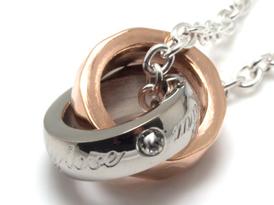 ステンレスネックレス ダブルリング&ピンクゴールド&ジルコニア