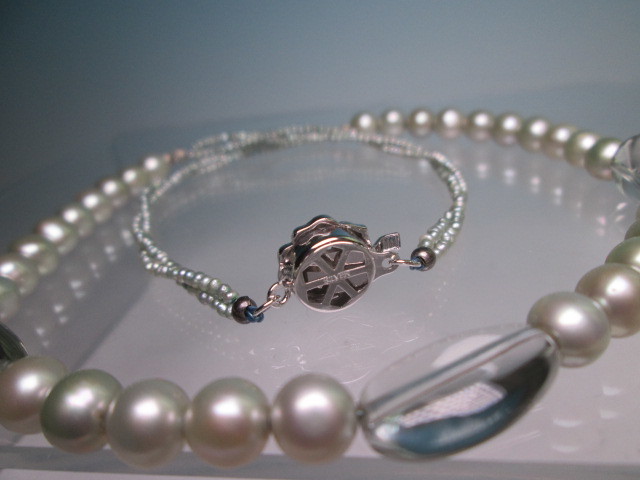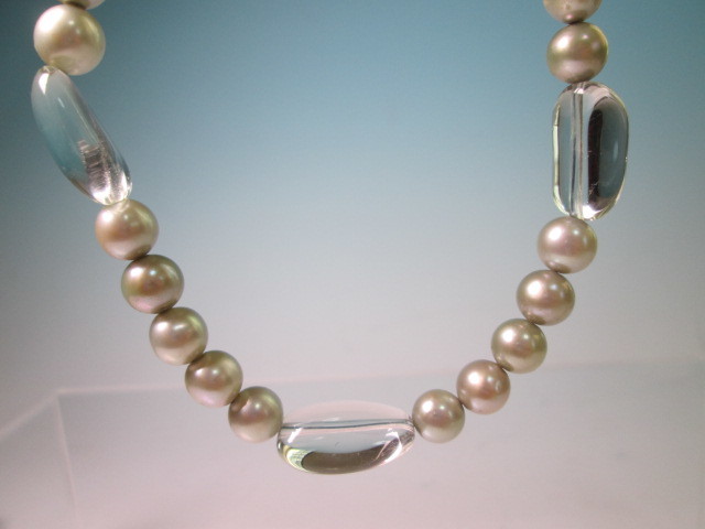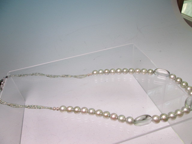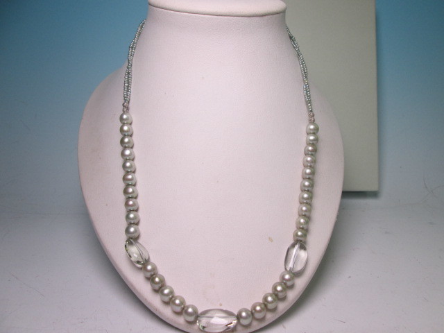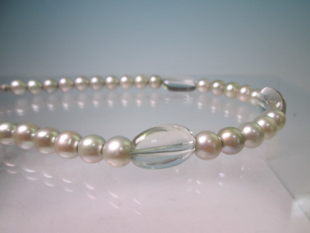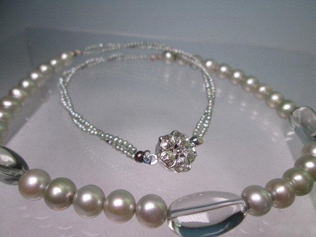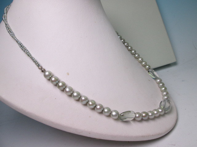☆SILVER 本真珠&本水晶&ビーズのデザインネックレス 24g ケース付