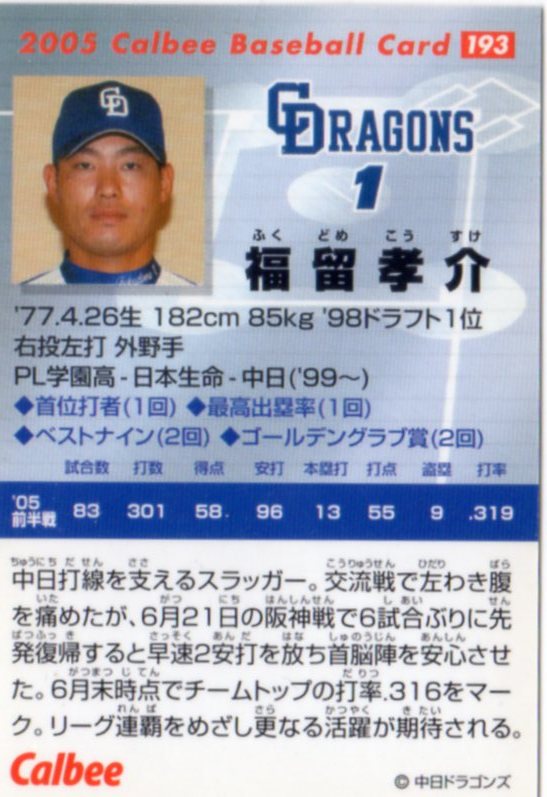 カルビー プロ野球05 193 福留 孝介/中日ドラゴンズ
