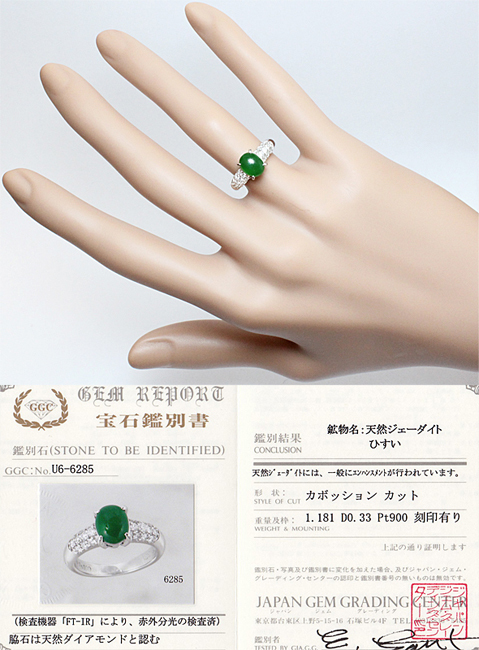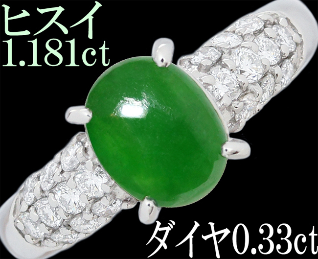 綺麗 上品☆翡翠 ヒスイ 1.181ct ダイヤ 0.33ct リング 指輪 Pt900 プラチナ 6.5号 ジェダイド♪鑑別書付・送料込 | ||