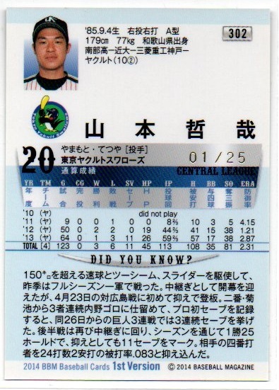 【山本哲哉(東京ヤクルトスワローズ)】2014 BBM 1st Version 赤箔サインパラレルカード [01/25]