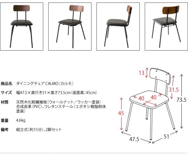 ダイニングチェア CALMO(カルモ) CH-087-2 2脚セット