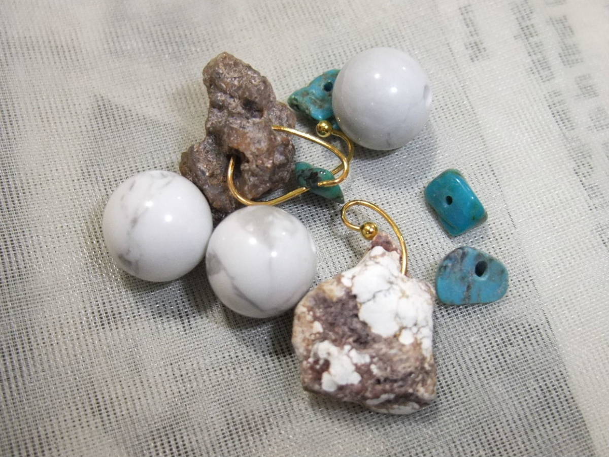 レア♪原石両穴ルースハウライトと丸珠とアリゾナ産本ターコイズ♪ 320-1