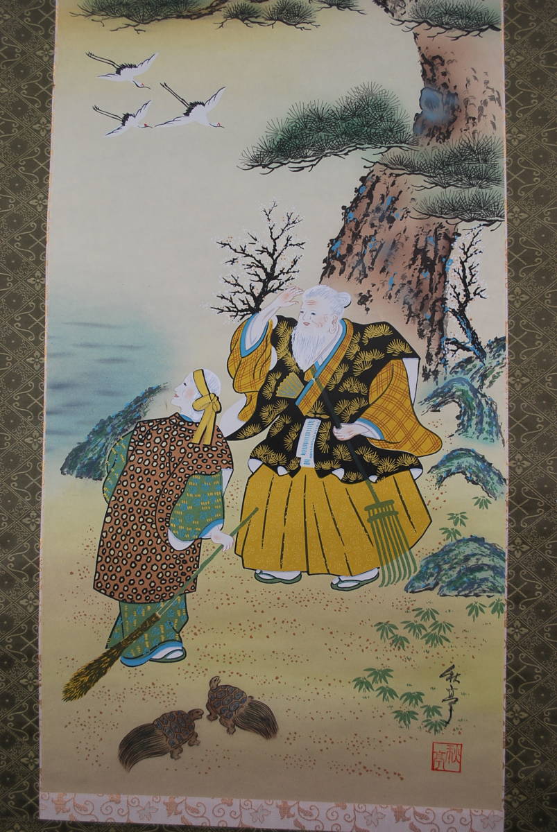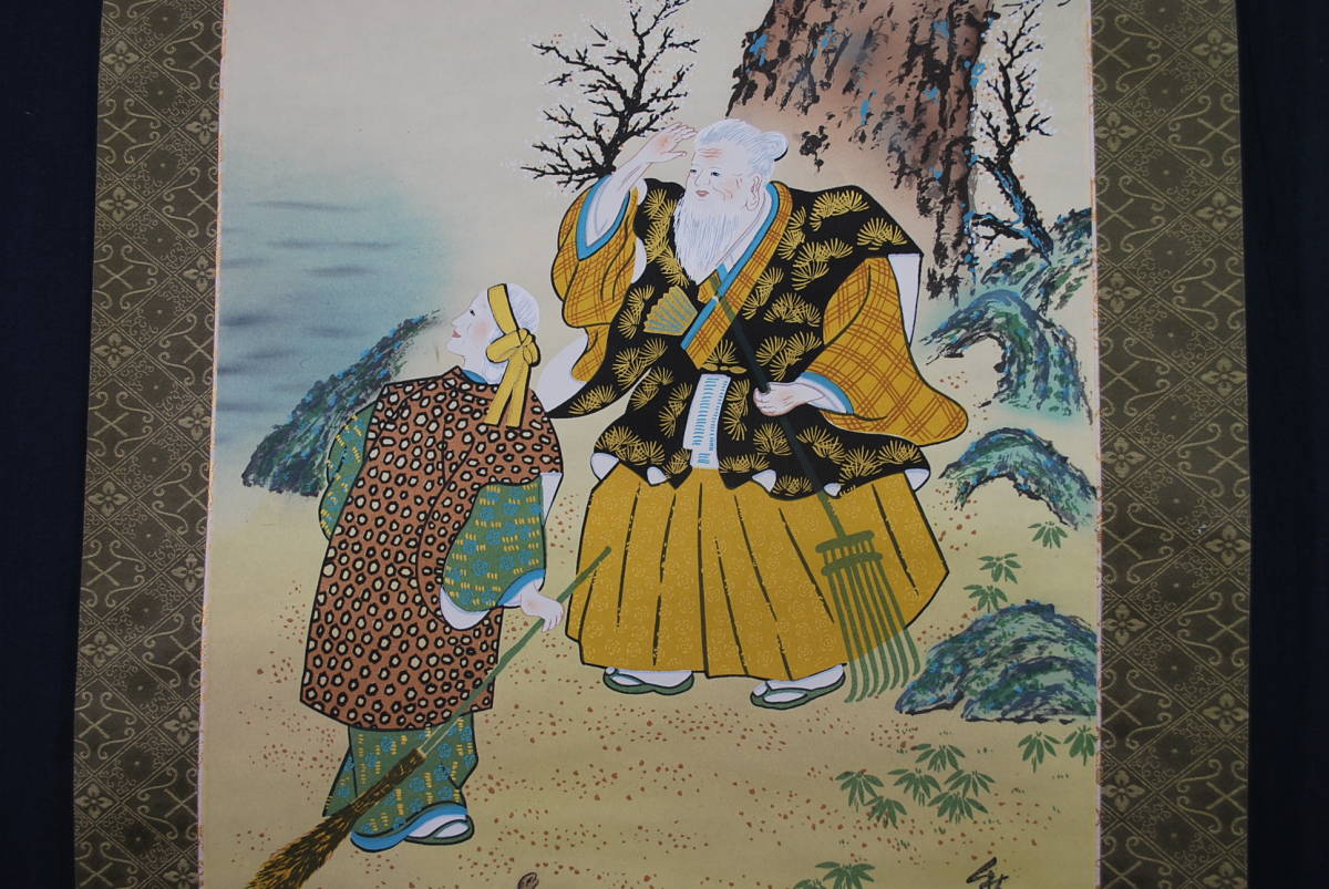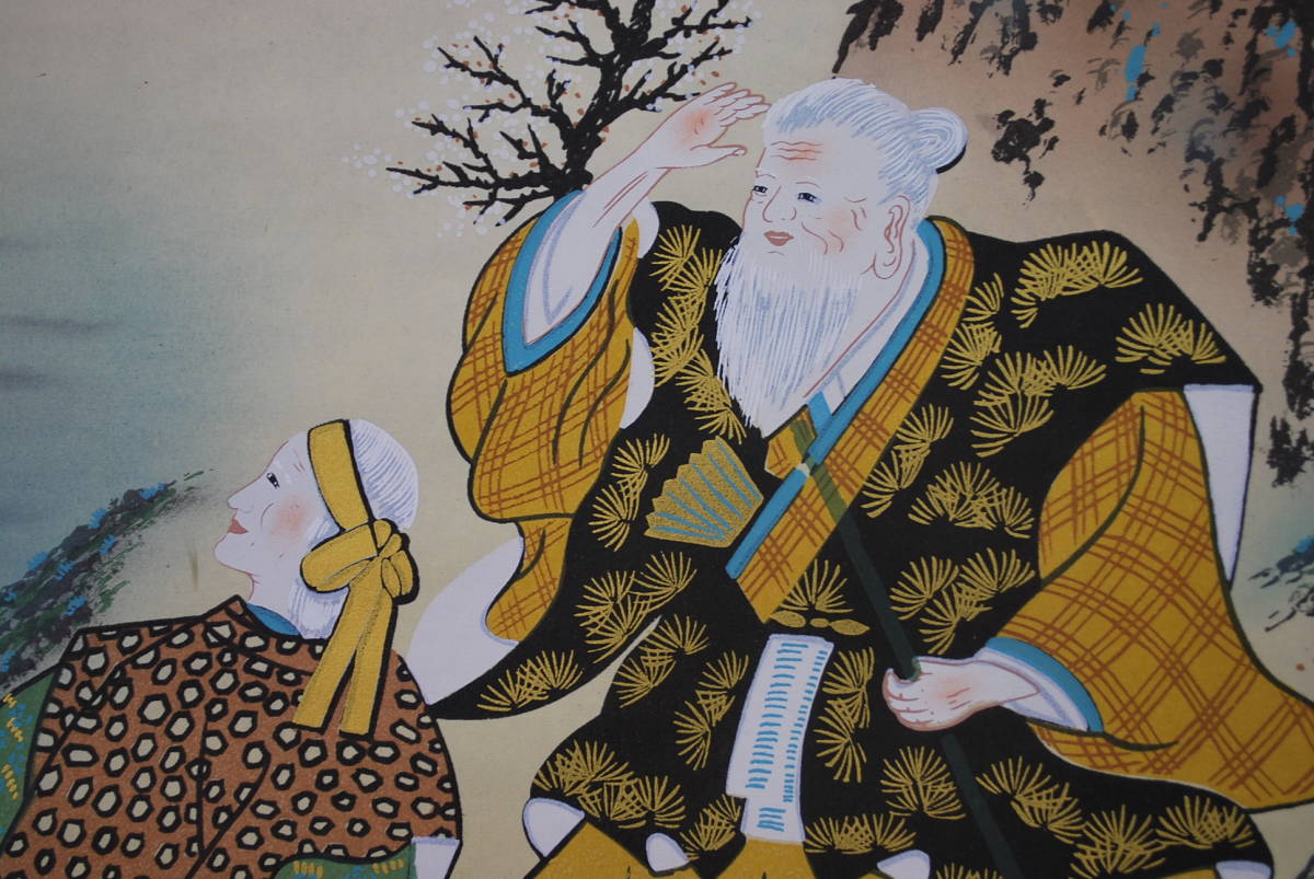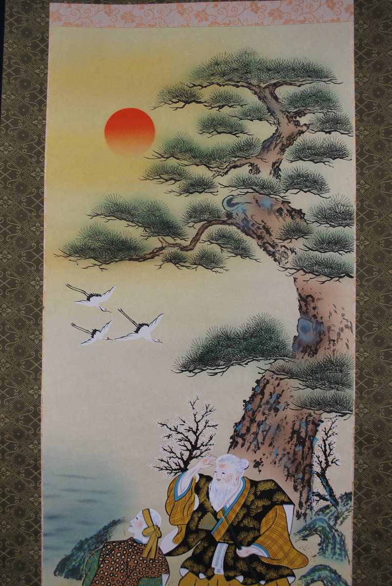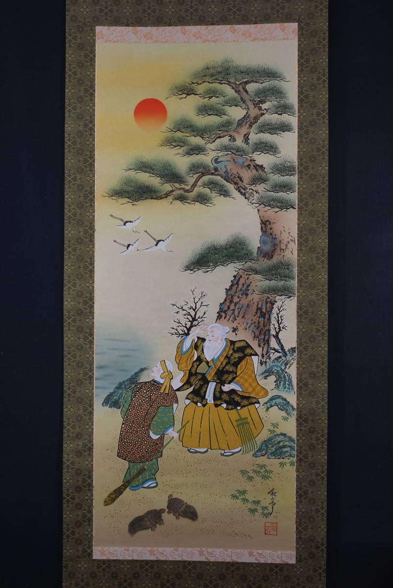 真作/秋亭/高砂図//掛軸☆宝船☆Q‐257 J