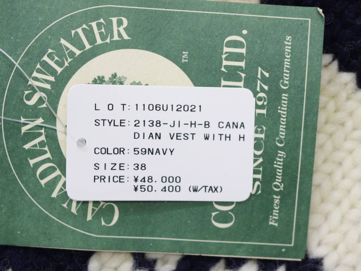 新品◆CANADIAN SWEATER カナディアンセーター◆カウチンセーター 雪柄 フード付き ニットベスト 38 定価48,000円*