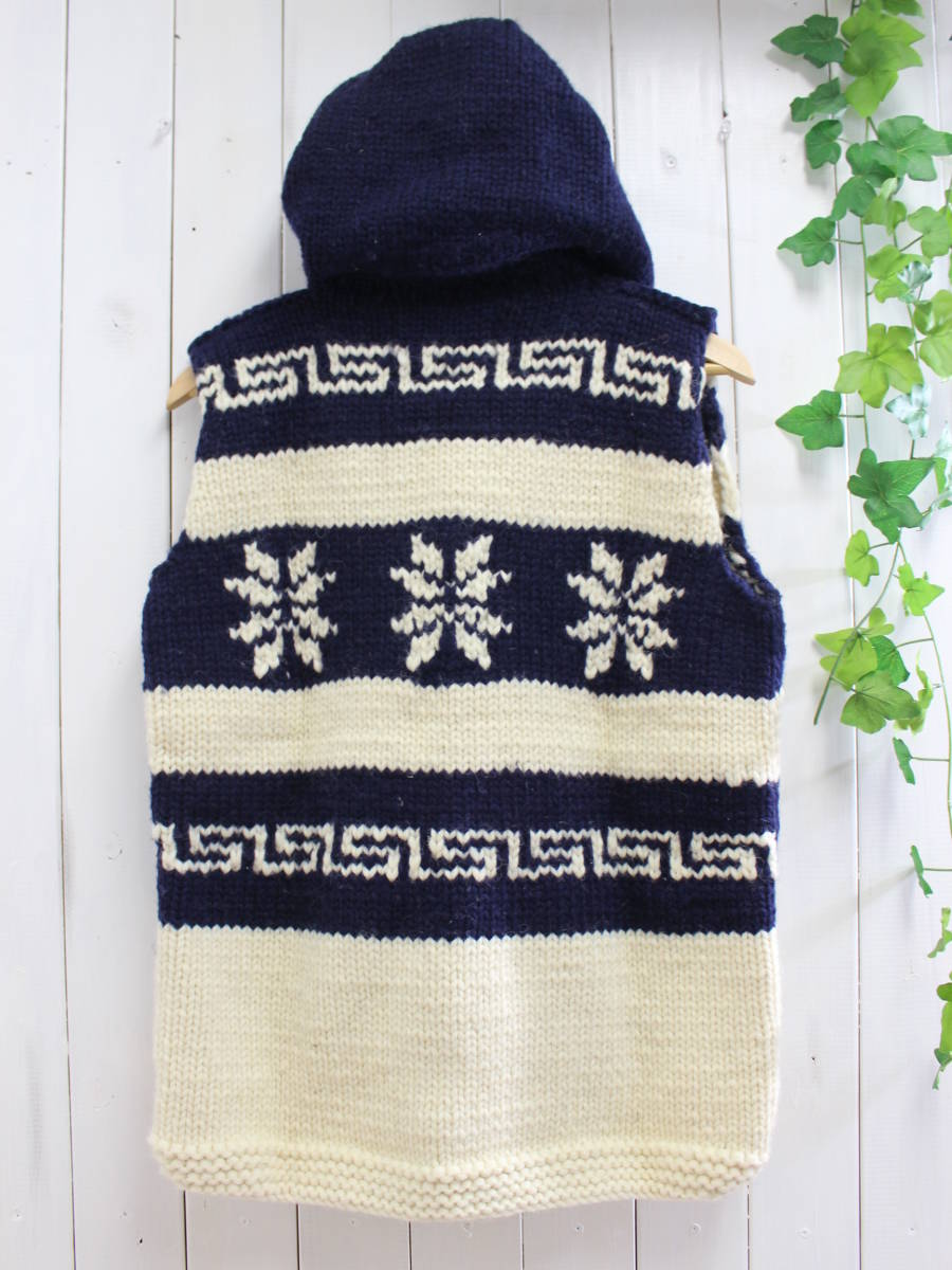 新品◆CANADIAN SWEATER カナディアンセーター◆カウチンセーター 雪柄 フード付き ニットベスト 38 定価48,000円*【180-115】
