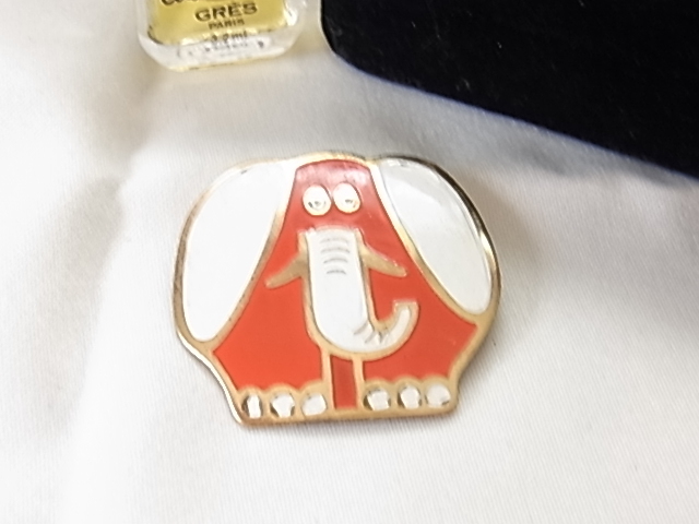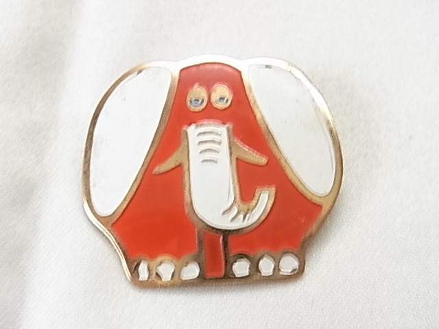 象デザイン エレファント 赤と白のコンビカラー使い 可愛いブローチ▽