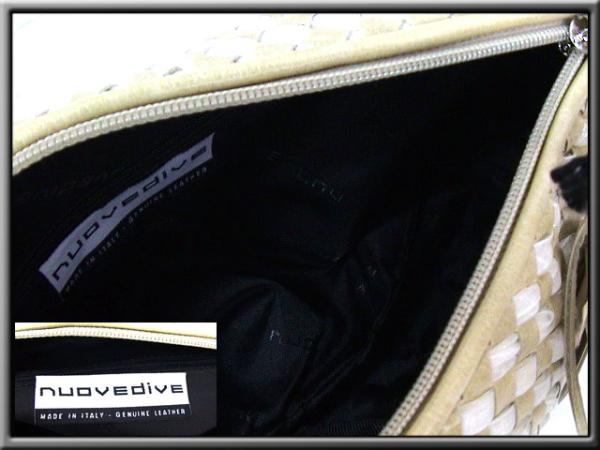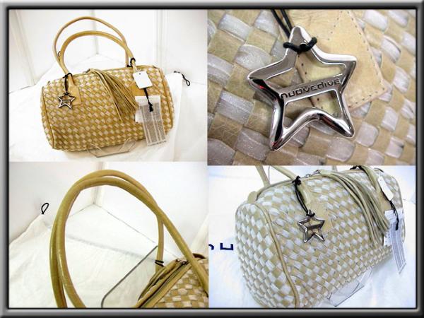 ☆在庫処分<新品>サイズ:H14xW28xD9.5cm 材質:ナイロンxカーフ 備考:内ポケット4つ 持ち手・48cm ナイロンとカーフでメッシュみたいな網目になってます。 参考価格¥17,500-