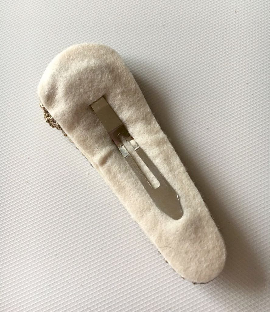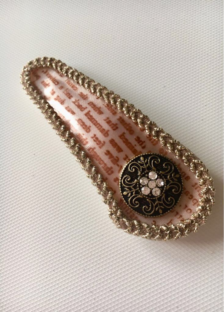 こちらは、英字のプリントがされたベージュ系のヘアピンになります。