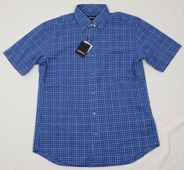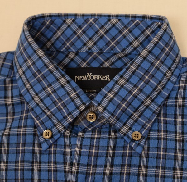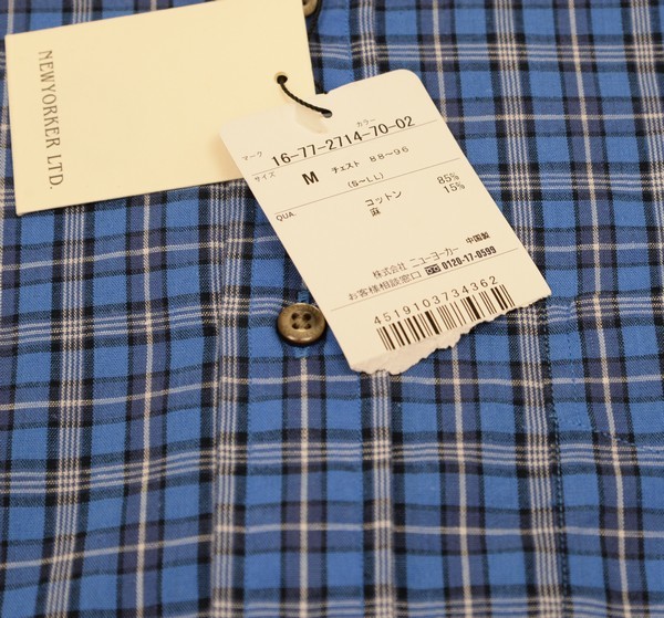 ●NEWYORKERニューヨーカー半袖ボタンダウンシャツ(M,青紺白チェック)新品