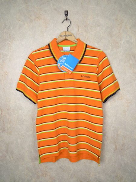 未使用品 COLUMBIAコロンビア ウェントワースポロシャツ●UVカット/PM2085/オレンジ/ボーダー/XSサイズ/小さめ/アウトドア/登山
