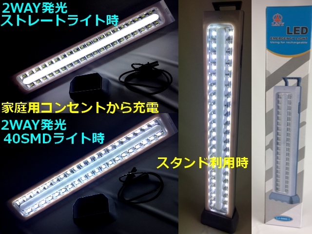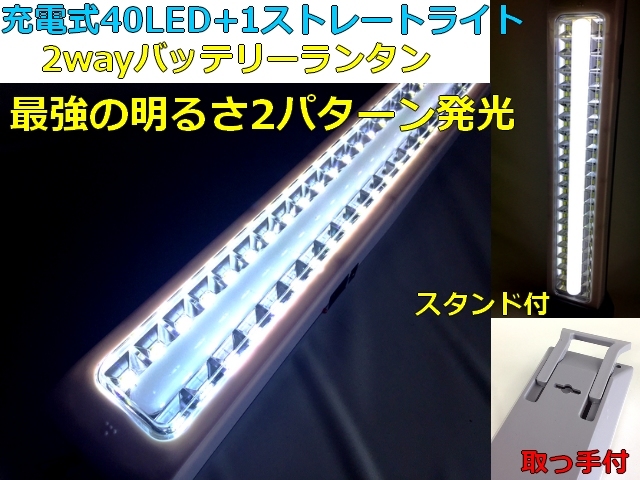 充電式40SMD LEDストレートライト2WAYランタン 懐中電灯 バッテリーランタン繰り返し充電500回アウトドア非常時停電時作業灯スタンド付