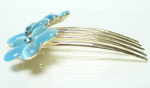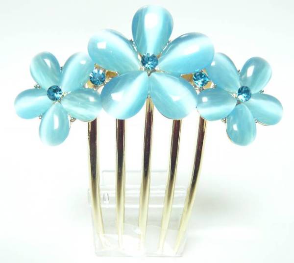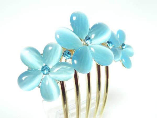 スワロフスキー キャッツアイ 夜会巻きコーム フラワーブルー