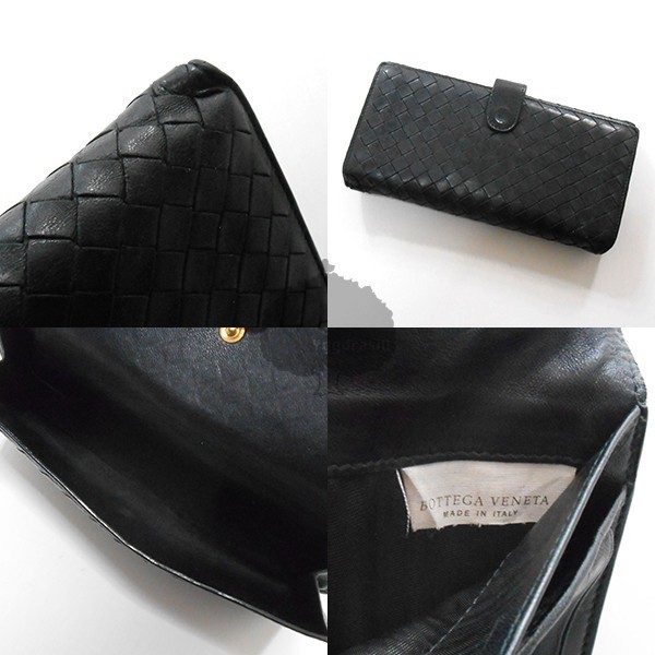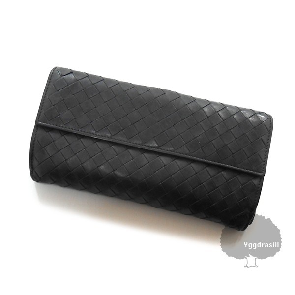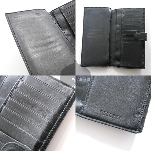 商品名:YGG★本物 BOTTEGA VENETA ボッテガヴェネタ イントレチャート 長財布 Wホック レザー 黒 ブラック ウォレット