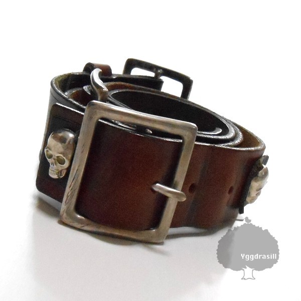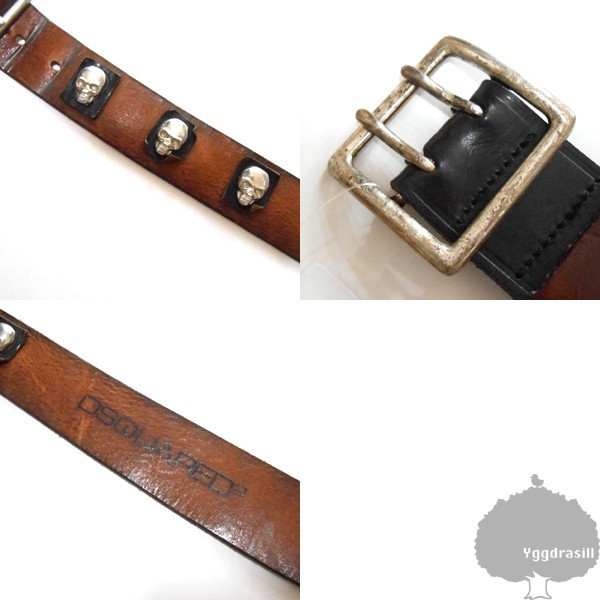 商品名:YGG■本物 ディースクエアード スカル レザーベルト 茶黒系 FREE Dsquared2 革