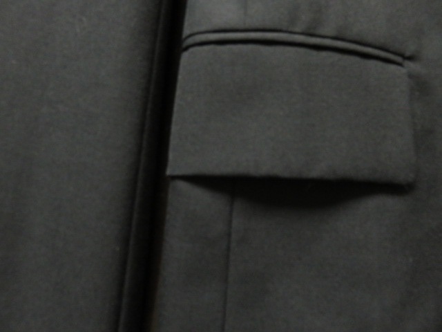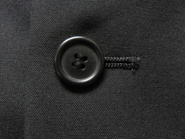 ジャケットは3つボタン止め、総裏地、お色はブラック。
