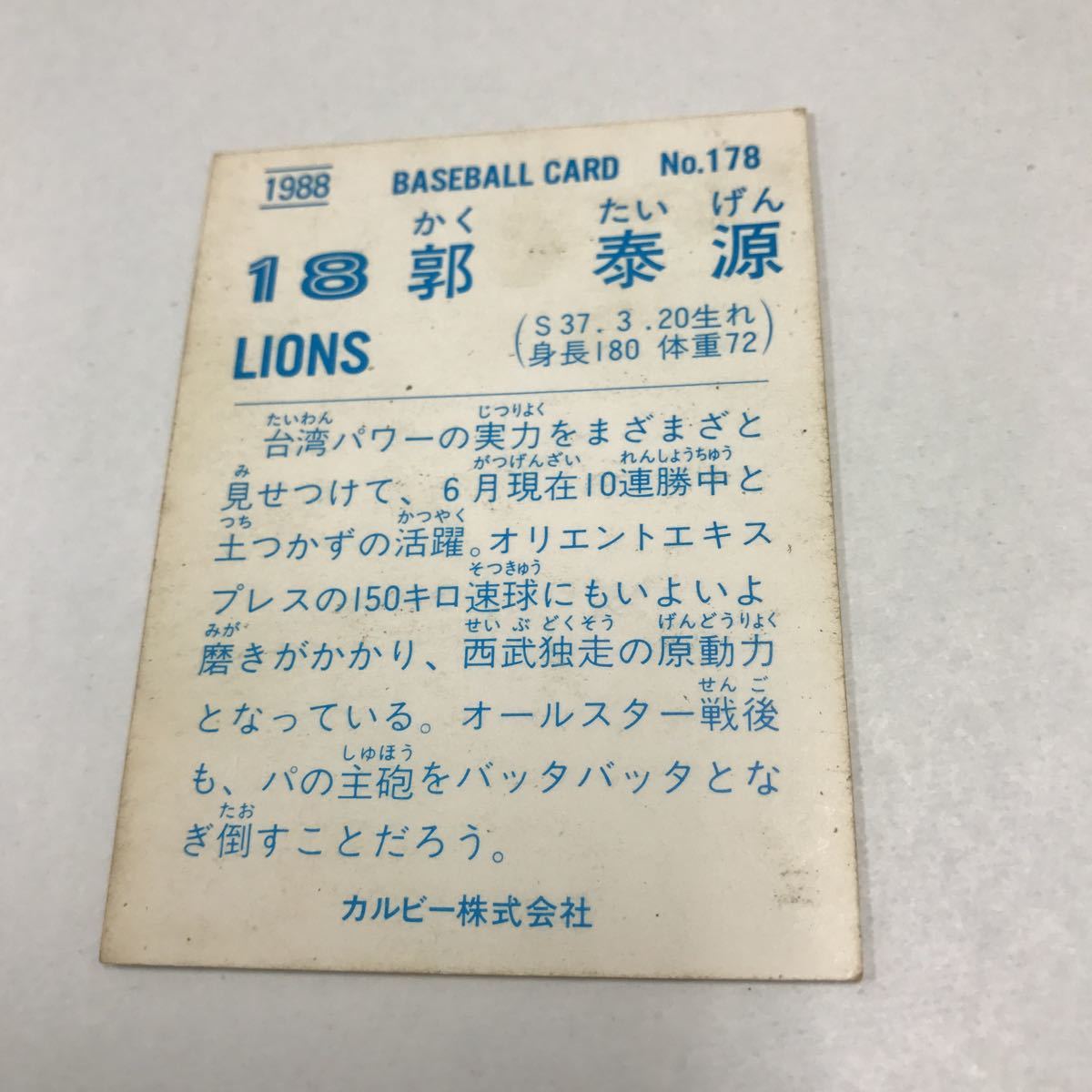 カルビー 88年 西武 178 郭泰源 1988年