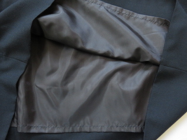 バックでボタン止め、総裏地、サイズ表示は見当たりませんが、実寸から見てMサイズ位と思います。