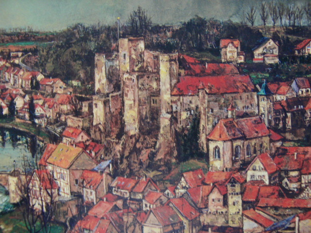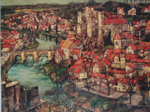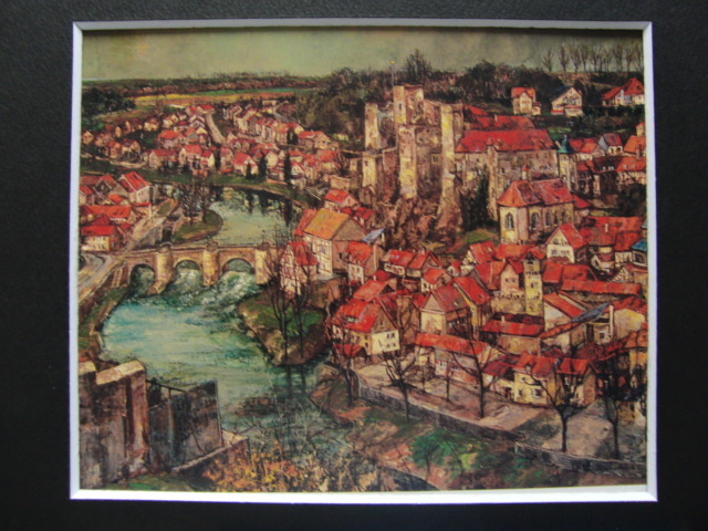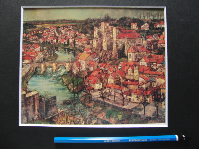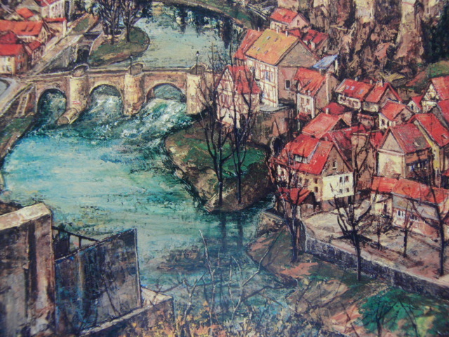 花巻 碧 【河畔の古城】 希少画集画、状態良好、新品高級額装付、送料無料、洋画 油彩 風景