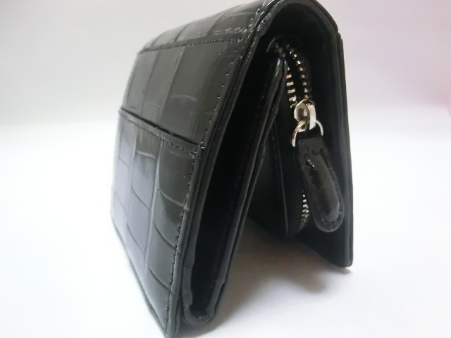 クロコダイル革にグレージング加工を施した、「皮革の宝石」と呼ばれる革を使用した3つ折り財布です。