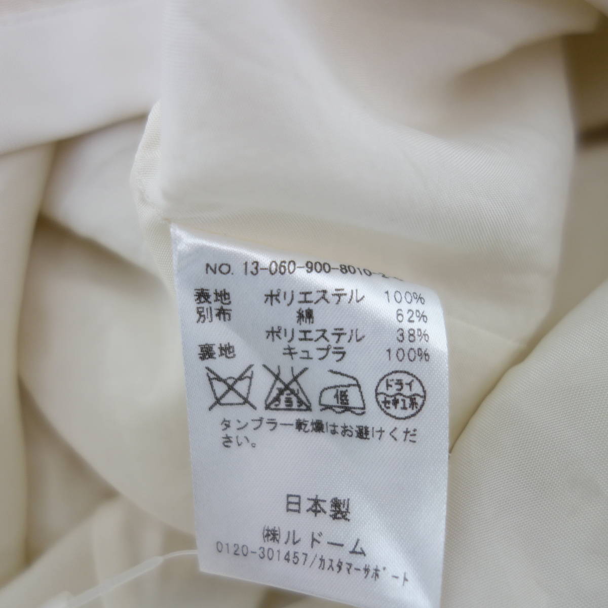 素材 (表地)ポリエステル100% (別布)綿62% ポリエステル38% (裏地)キュプラ100%