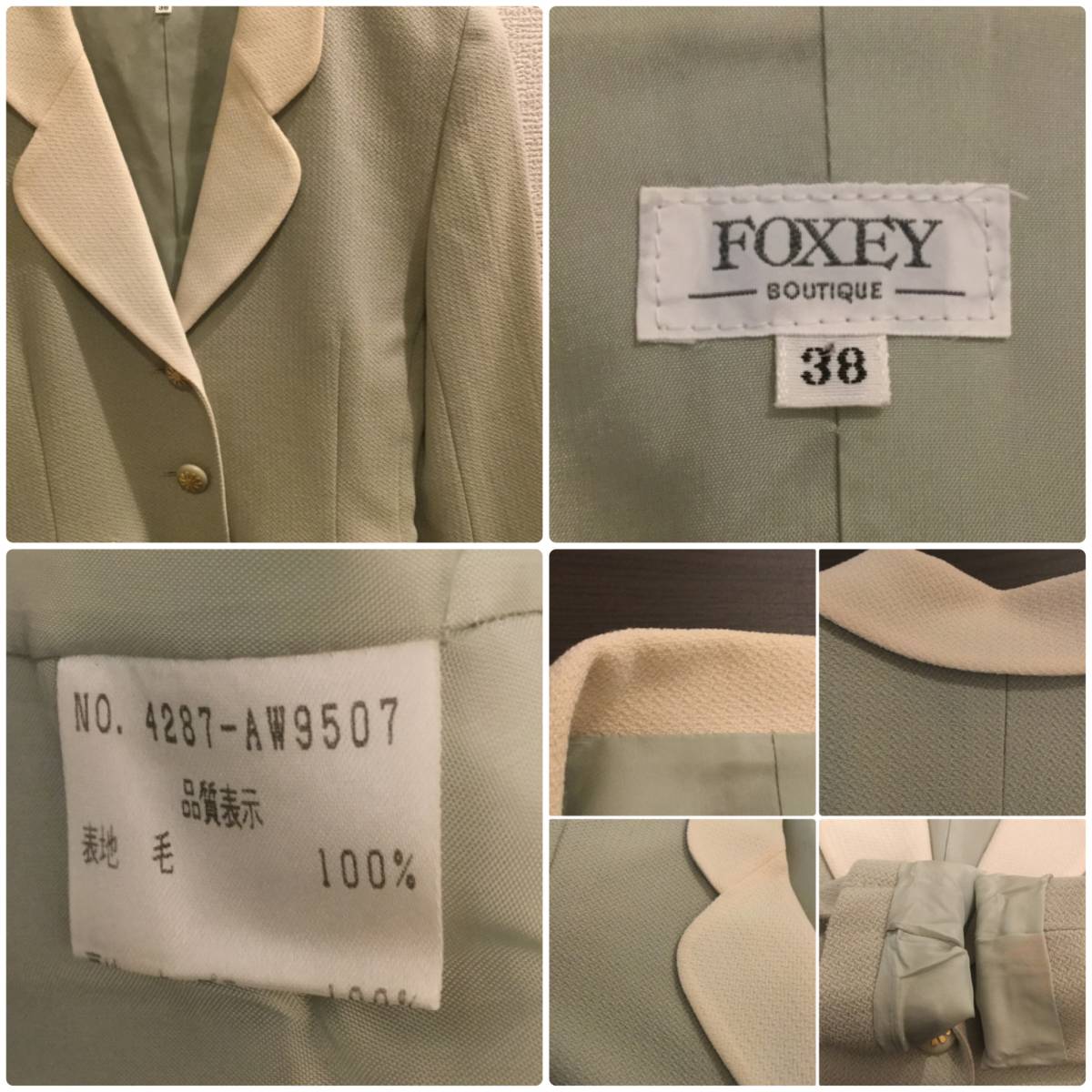 フォクシー/FOXEY 切替3つ釦ウールテーラードジャケットセットアップ/スカート