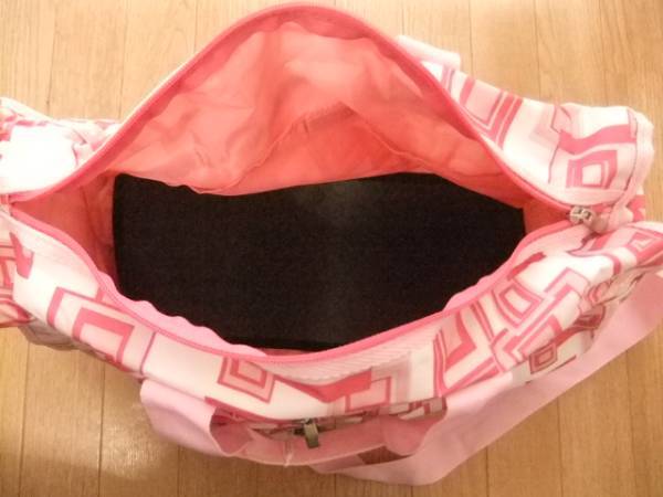 新品タグ付の、ピンクベースのスクエア柄2WAYバッグです。