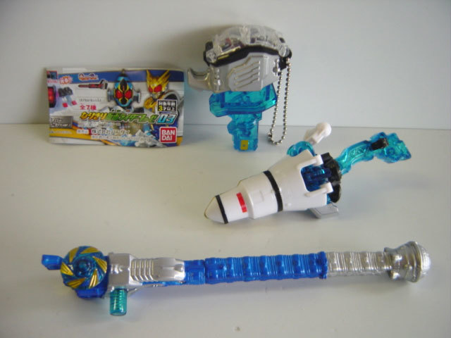 1.バリズンソード(変形) 2.メテオストームシャフト(ストームトッパーが回転) 3.ミニミニ・コズミックスイッチ(変形・プッシュギミック) ◇仮面ライダーフォーゼなりきりシリーズ第3弾! |