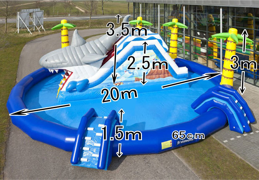 商品説明 | 直径20mに大きなサメの滑り台がつきます。コンクリートと違いエアープールなのでどこにぶつかってもけがはありません。特にお子様には非常に喜ばれます。 レジャー施設の目玉になります。またホテル、有休スペース、スキー場などには最高です。お客様に大きなプレゼントになります。贅沢を言わせていただくとこのプールをメインにしてサイドに小さなプールをあと1~2点ほど揃えてとさらに様々なユニークな浮き輪、水上遊具(かなり面白いものを揃えております。お問い合わせ下さい。)をセットにすると国内にはめったに見られないレジャープールが誕生します。価格も決して高くありません。 一般プールの最大のネックは設置コスト、季節外の管理ですがエアープールは空気を抜き乾燥してたたんで片付け終了です。 ※ふわふわなどを併設するとさらに超個性的なレジャーランドが誕生します。当社の出品リストをご参照ください。 ●プールサイズ:20 * 20 * 0.65 M 材質:0.6mmpvcターポリン 重量:260キロ 梱包サイズ:90 * 90 * 80 cm ●サメの滑り台 サイズ:縦10M×横3M×高さ3.5M 材質:0.55 mmpvc防水シート 数量:1個 重量:160キロ 梱包サイズ:90 * 80 * 120 cm 当社の商品はオーダーメイドですからサイズ、色、デザインの変更・オプション可能です。またかって国内には数少ない品も数々ご用意できます。 ■かなり大きなプロジェクトです。細かい点などお気軽ににお問い合わせください。 有限)ツヅキ商事 ビジョンプランTEL 070-5613-7006 お電話いただくとこちらから折り返しお電話いたします。 |