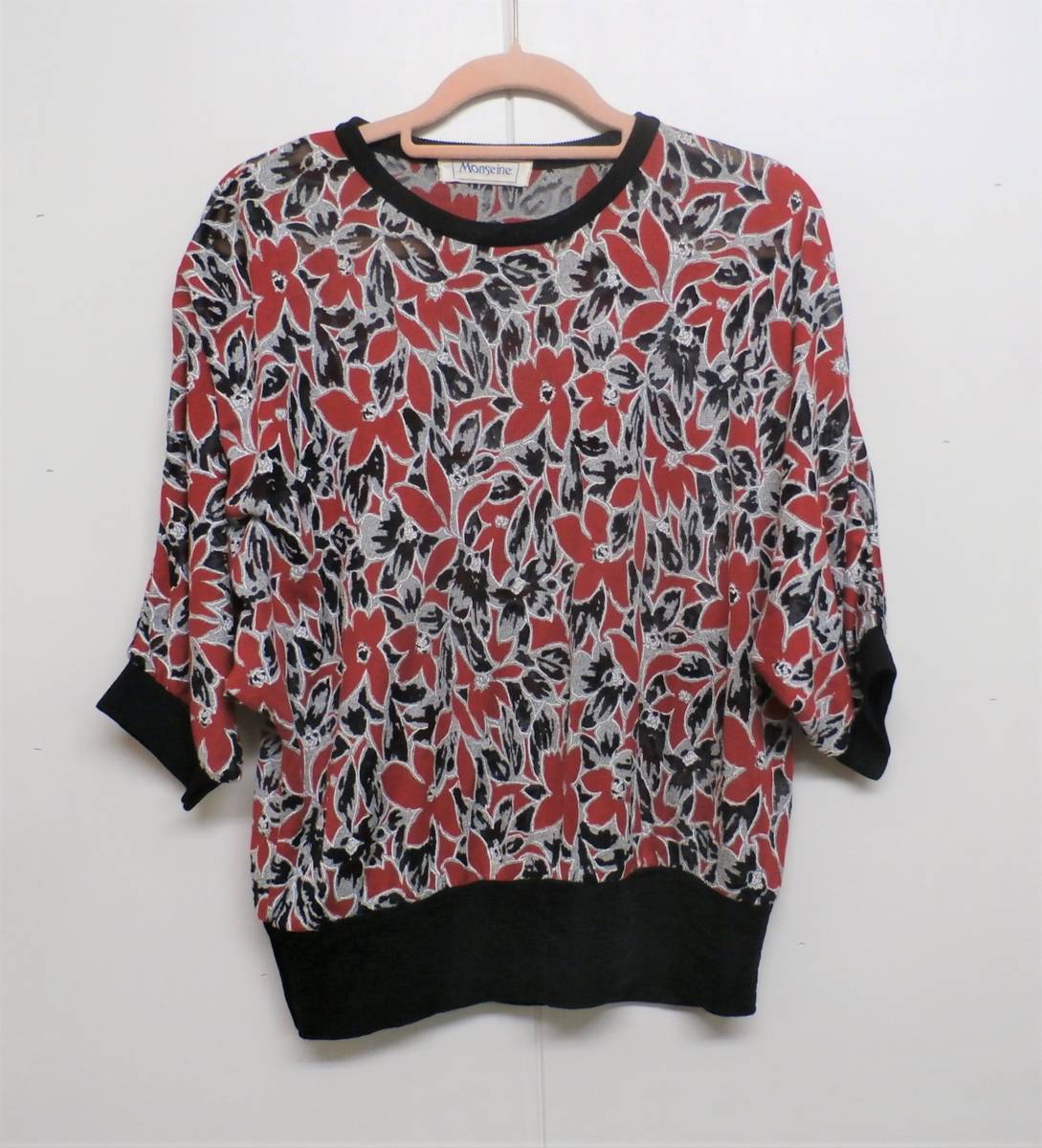 ◆◆Monseine 大きいサイズLL お洒落な総柄 シースルー トップス 日本製 です