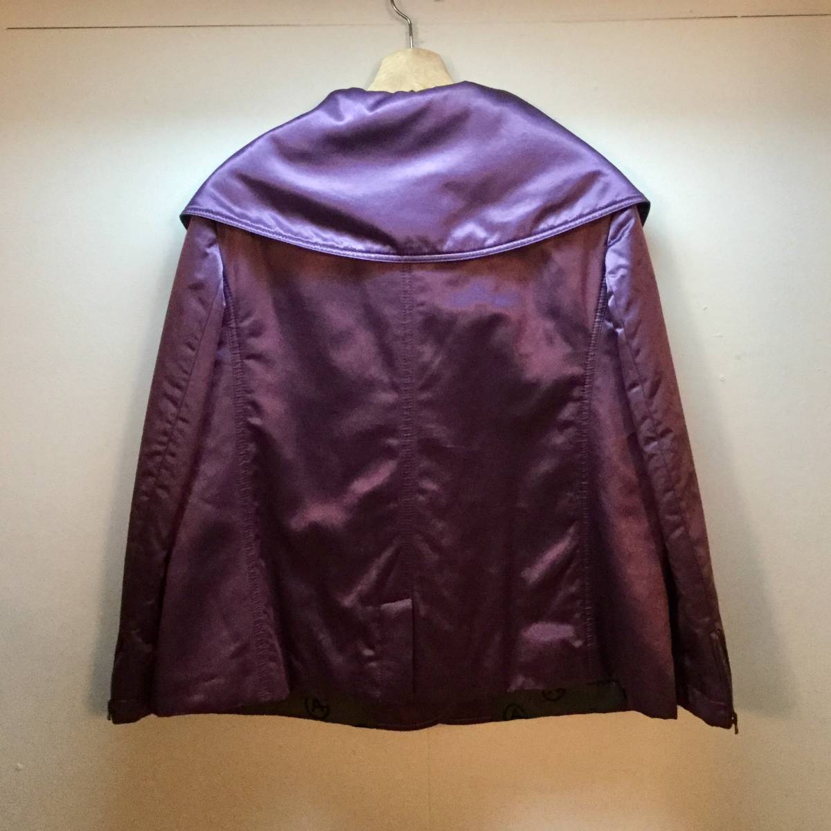 カラーはパープル系、素材は表/コットン50%・レーヨン50%、裏/ポリエステル100%になります。