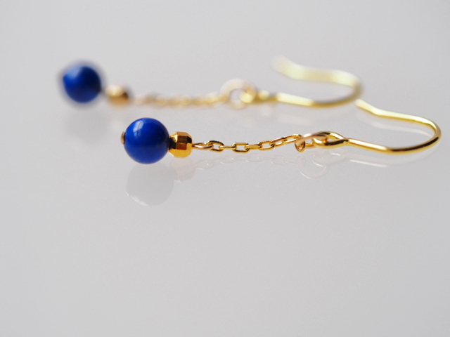 自然の綺麗な発色があり、4mmサイズのラピスで、繊細さが引き立つ、洗練されたピアスになっております。