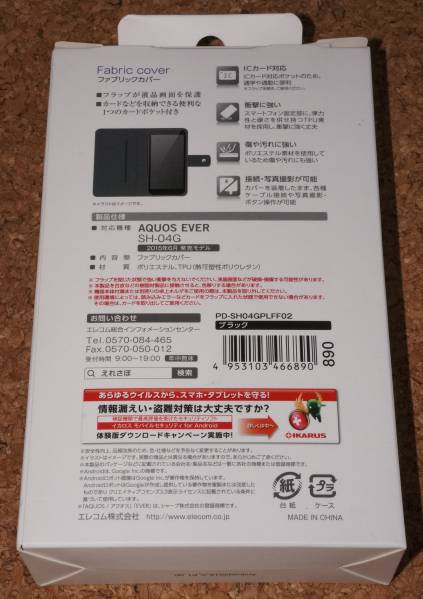 ELECOM AQUOS EVER SH-04G ファブリックカバー 新品・未使用です。