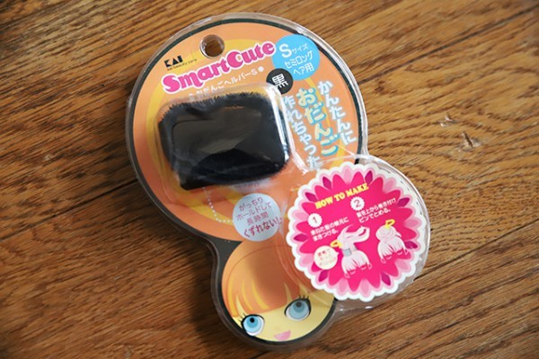 ポニーテールを作った髪にマジックテープ状の『おだんごヘルパー』をつけて、