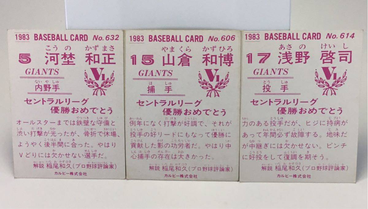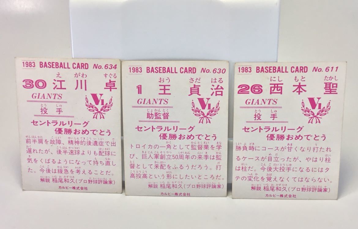 ★ 商品名 ★ カルビー プロ野球カード 1983 祝優勝カード No.634江川 No.630王 No.611西本 No.632河埜 No.606山倉 No.614浅野 管理0017 |
