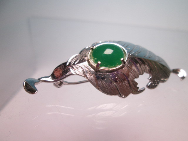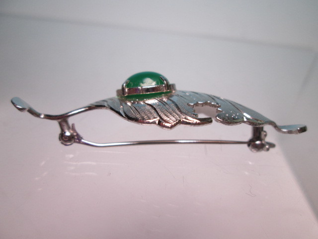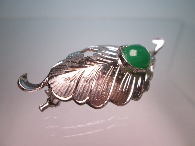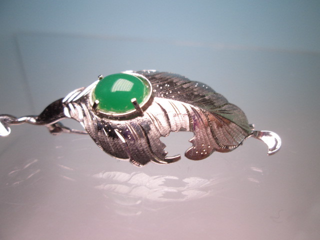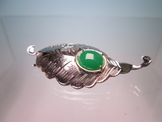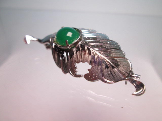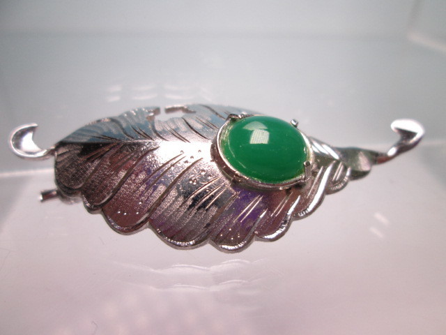 ☆SILVER 銀彫金細工緑石飾りの葉っぱのブローチ 7,93g