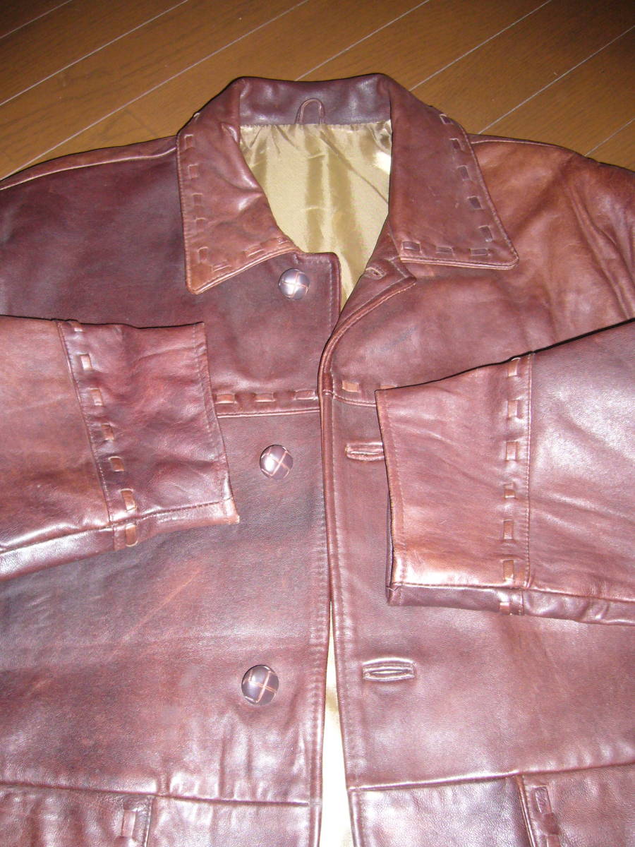 322-1000♂♀:VIA NUOVA ビア ヌオーヴァ COW 牛革 ハーフコート レザージャケット ウエスタン調 色.茶 サイズ.50 カウボーイ